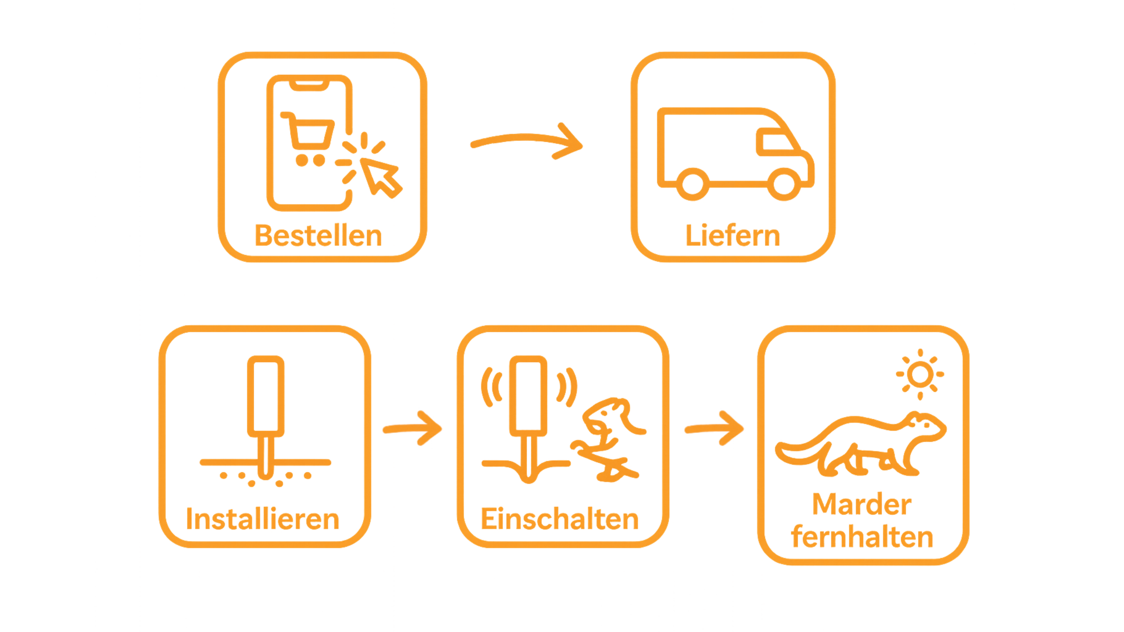 Das Gerät sendet Ultraschall-Signale in wechselnden Frequenzen und Intervallen aus. Diese Töne sind für Marder äußerst störend, für Menschen jedoch nicht hörbar. Durch die wechselnden Zyklen gewöhnen sich Marder nicht daran.