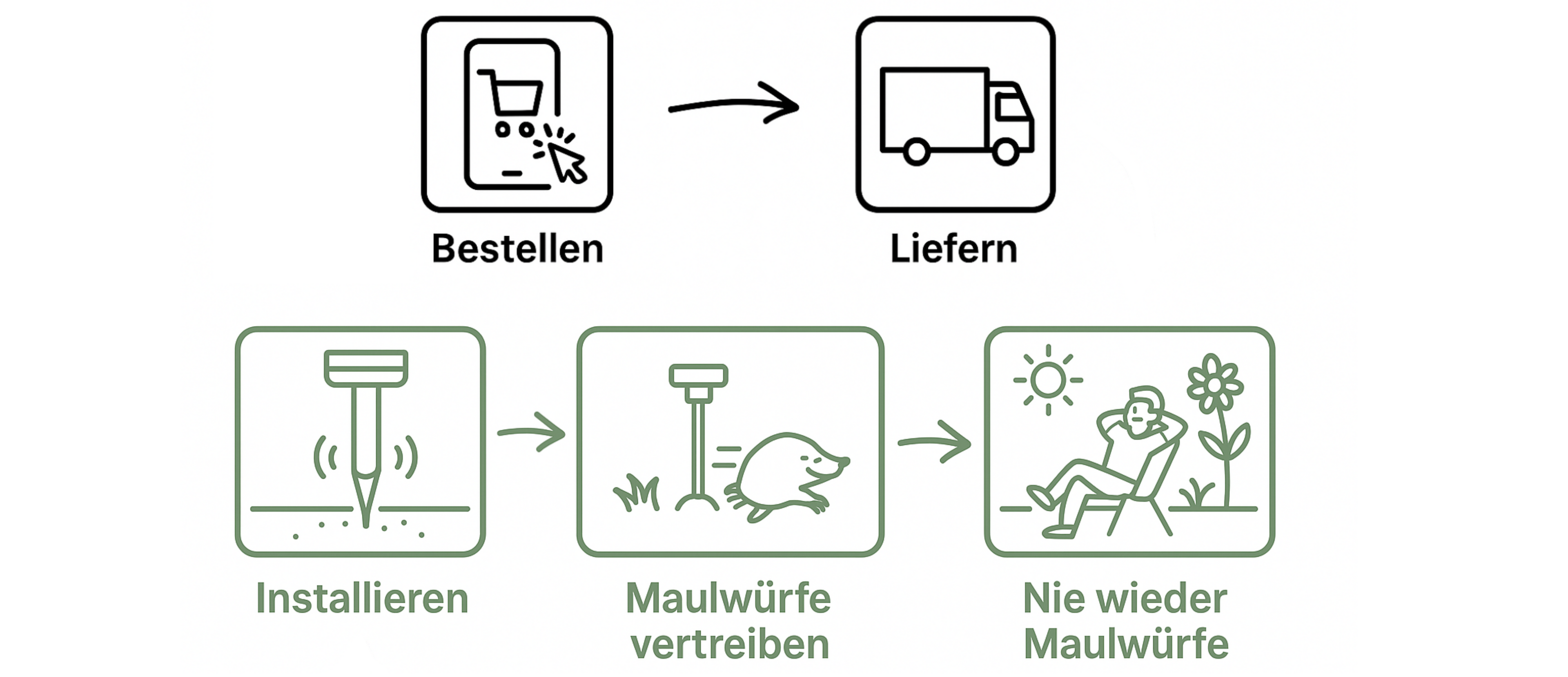 "Ich hätte nie gedacht, dass ein so kleines Gerät so einen großen Unterschied in meinem Garten machen kann! Moleaway hat mein Problem mit Maulwürfen schnell und effektiv gelöst – und das ganz ohne Chemikalien. Ein echtes Must-Have für jeden Gartenbesitzer!"